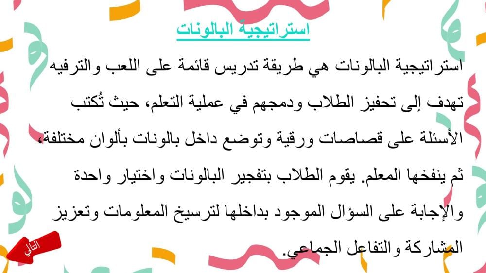 حوّل حصة لغتي إلى تجربة ترفيهية وتعليمية لا تُنسى مع قالب استراتيجية البالونات 🎈✨.