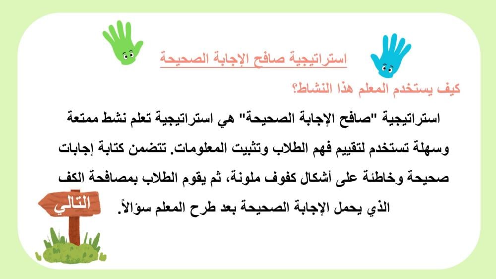 اجعل حصصك أكثر حيوية مع قالب استراتيجية صافح الإجابة الصحيحة لمادة المهارات الأسرية – الصف الثاني الابتدائي.